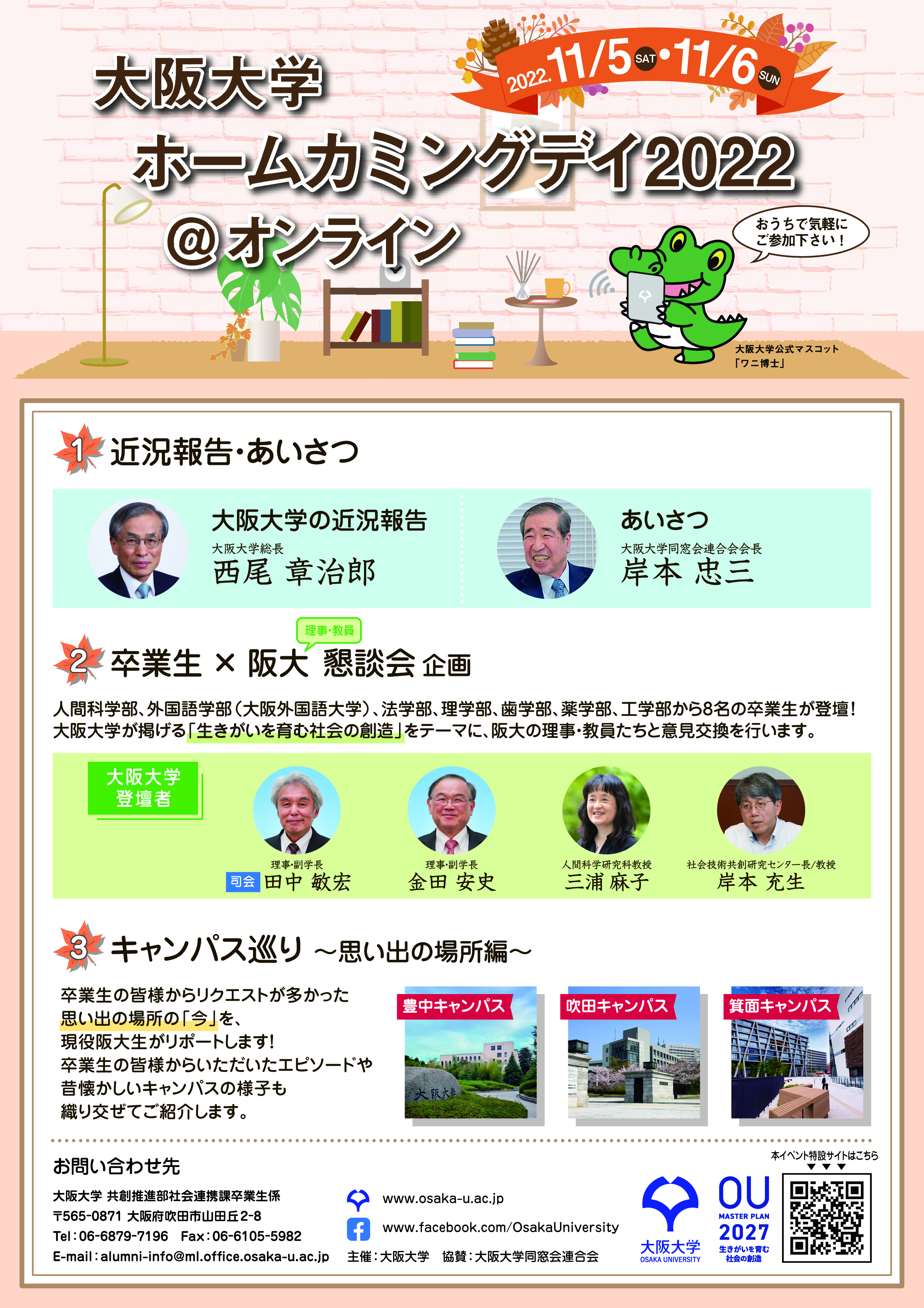 | 会場 | オンライン:大阪大学ホームカミングデイ2022特設サイト |