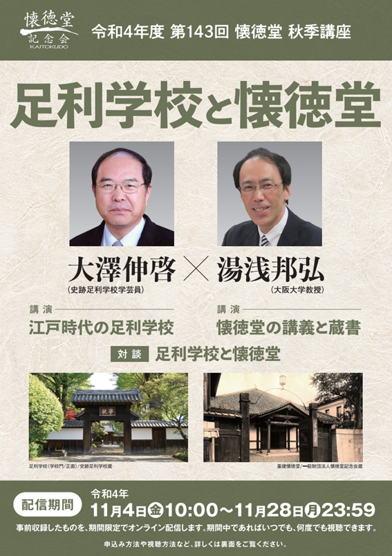 令和4年度第143回懐徳堂秋季講座 「足利学校と懐徳堂」