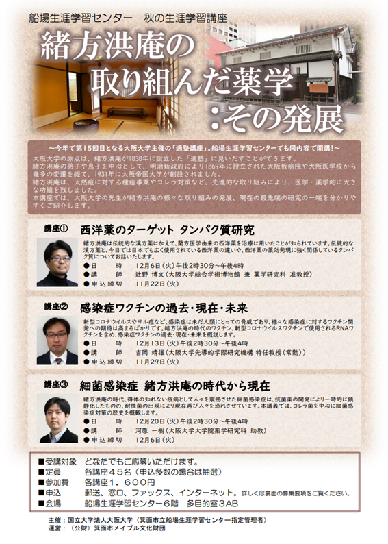 箕面市立 船場生涯学習センター | 【受講者募集】令和4年度秋の生涯学習講座「緒方洪庵の取り組んだ薬学:その発展」のご案内 (osaka-u.ac.jp)