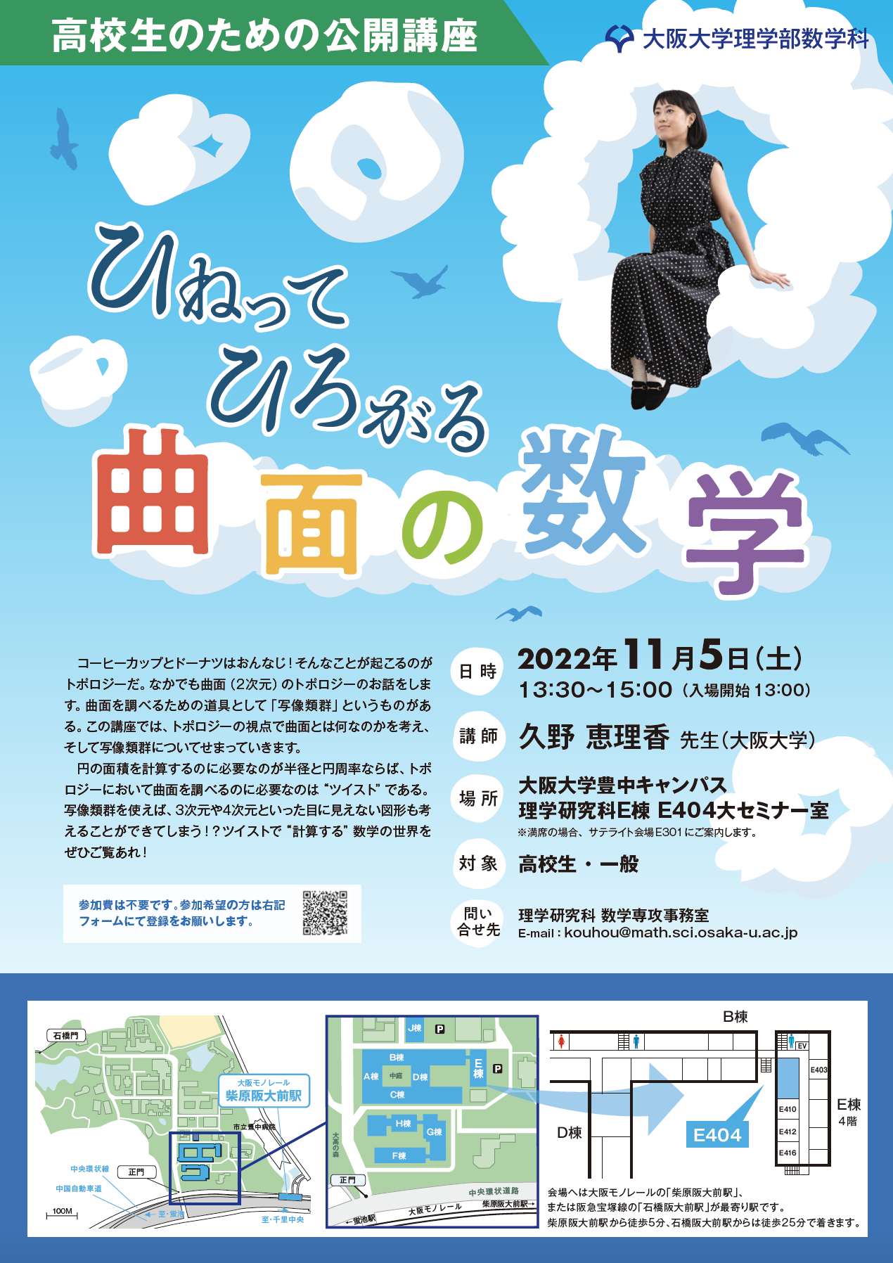 | 申し込み窓口 | http://www.math.sci.osaka-u.ac.jp/koukai/ |