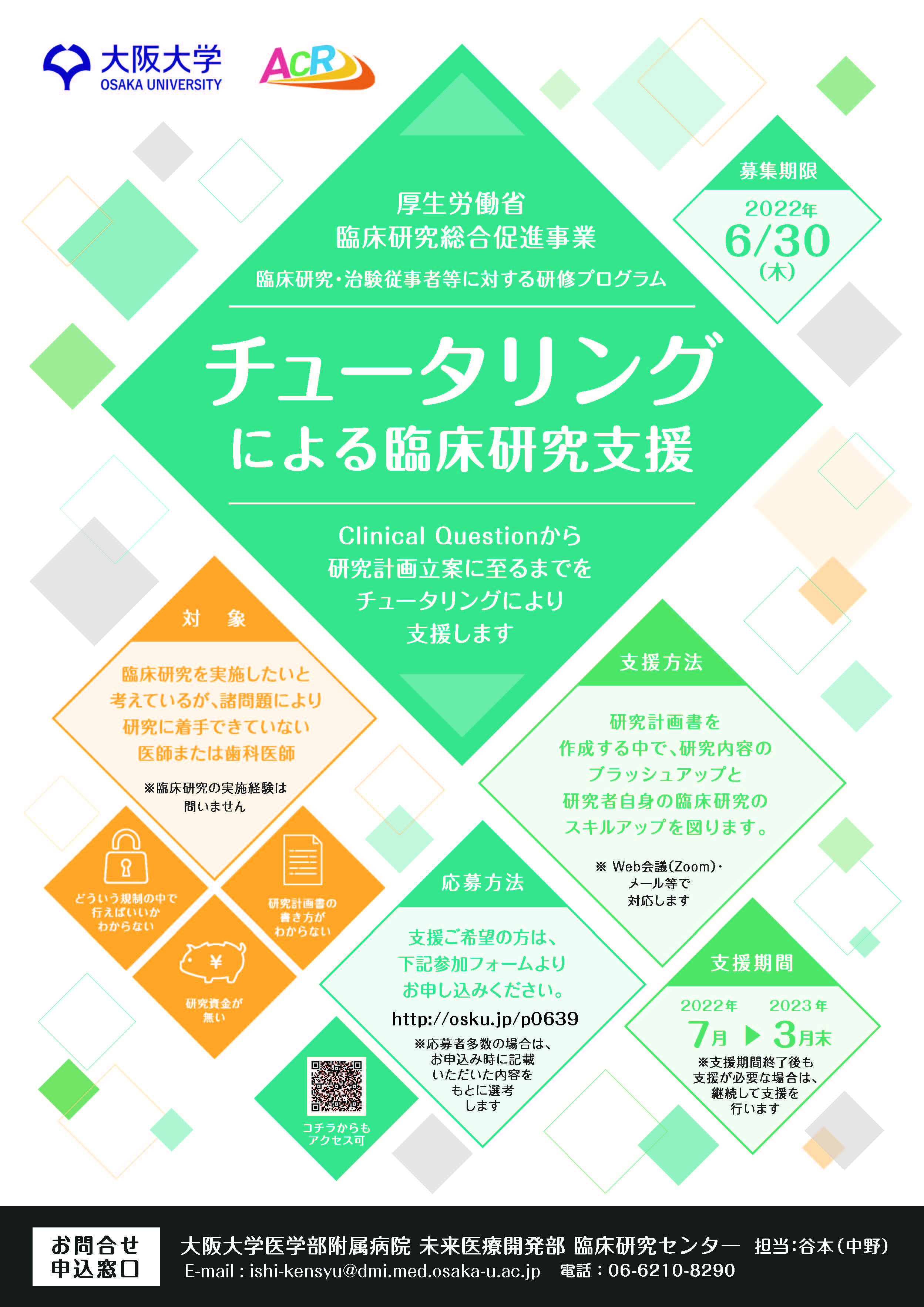 チュータリング(OJT)による臨床研究支援 ~厚生労働省 臨床研究総合促進事業 臨床研究・治験従事者等に対する研修プログラム