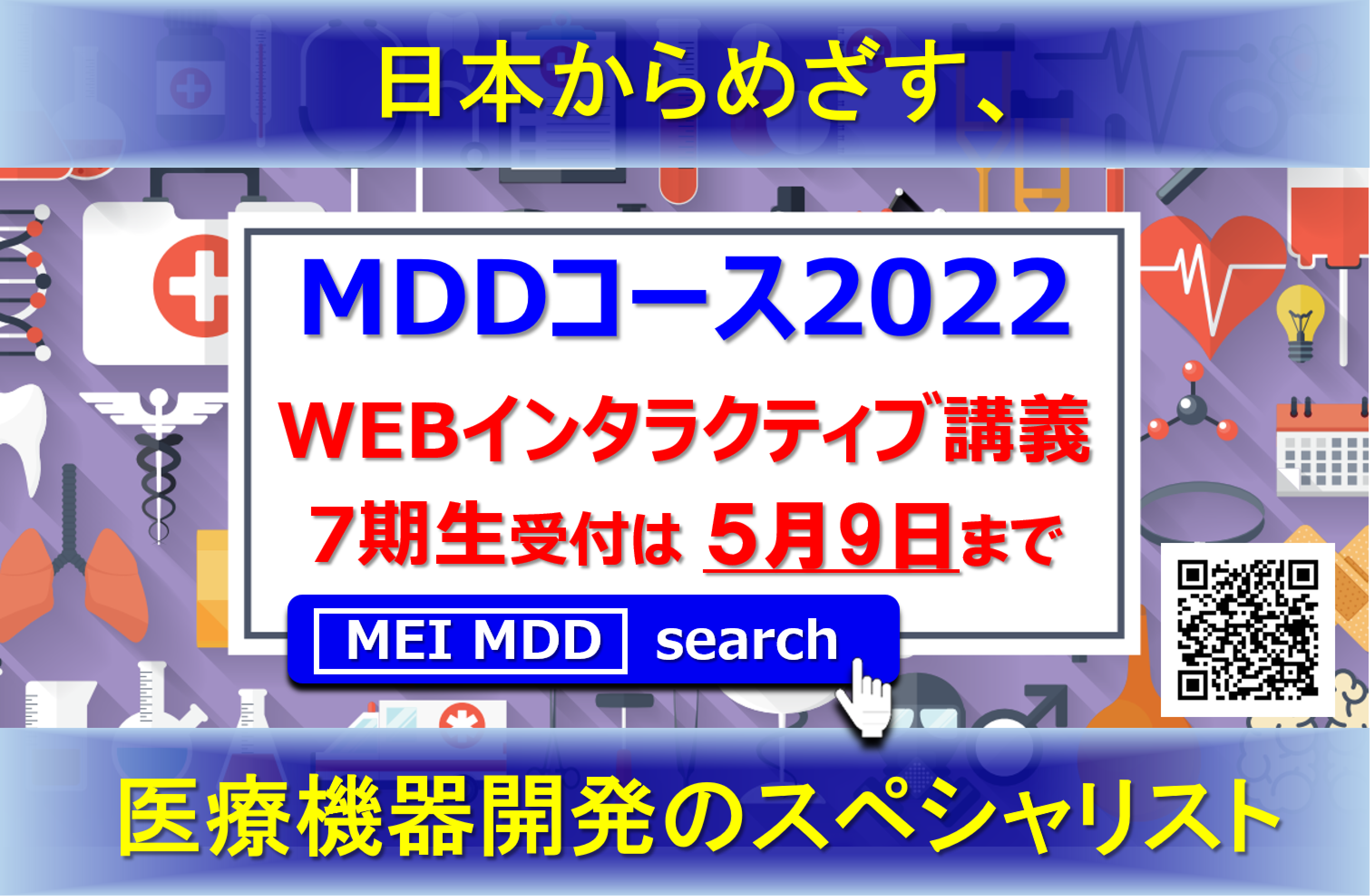 大阪大学MEIセンターでは、医療機器開発のスペシャリストを養成する 社会人向けコース『メディカルデバイスデザインコース(MDDコース)』の 7期生を募集中です。