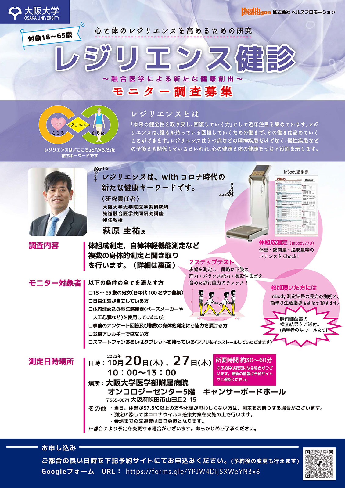 【問い合わせ先】 大阪大学大学院医学系研究科 先進融合医学共同研究講座