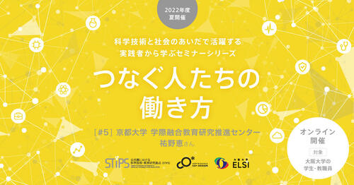 【学内限定】STiPS Handai研究会 祐野 恵さん(京都大学 学際融合教育研究推進センター) つなぐ人たちの働き方(2022年度夏)#5