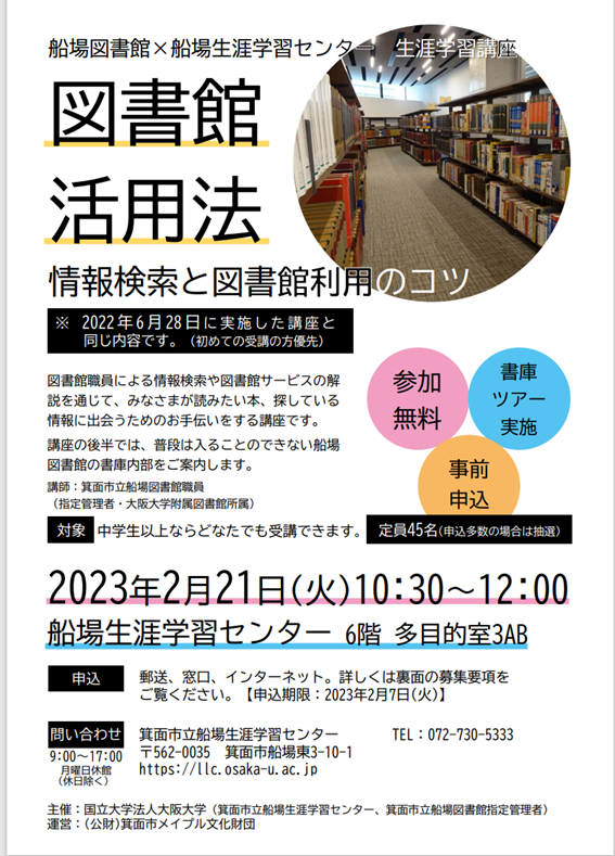 船場図書館×船場生涯学習センター生涯学習講座「図書館活用法 ~情報検索と図書館利用のコツ~」