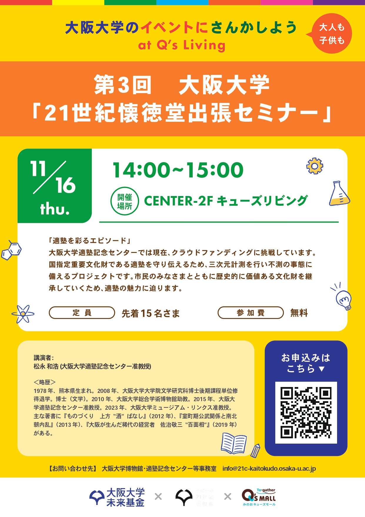 | 後援等 | 共催:大阪大学共創機構渉外部門、協賛:みのおキューズモール |