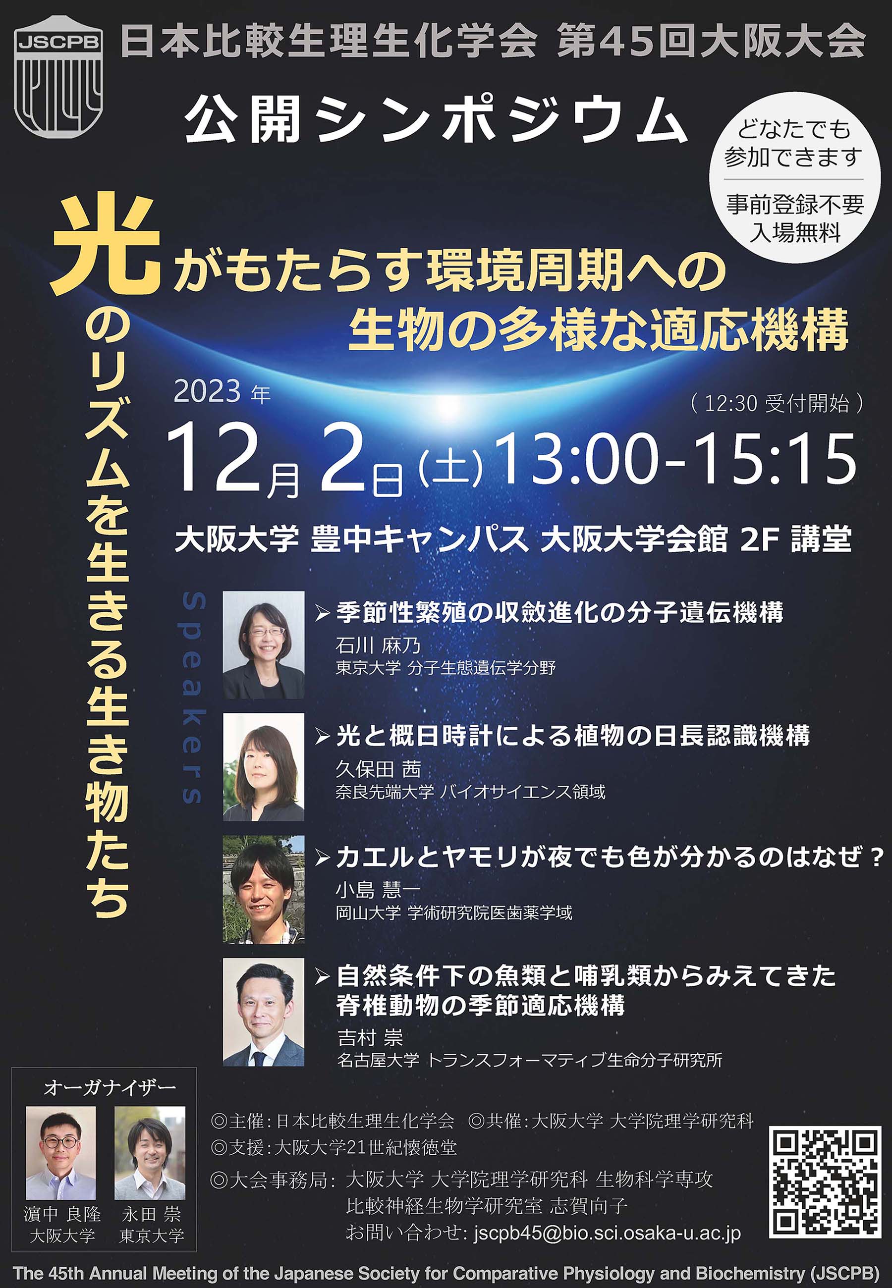 日本比較生理生化学会 第45回大会ホームページ:https://jscpb-2023osaka.org/symposium1