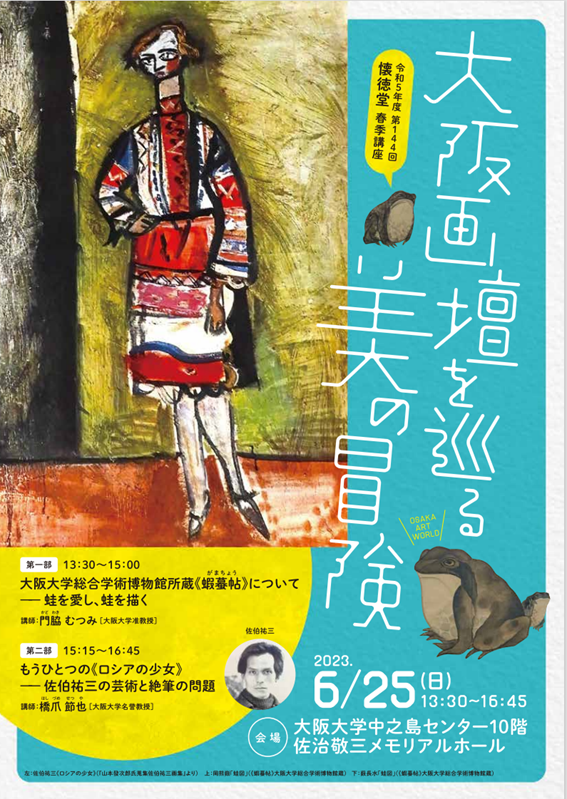 近世の大坂は「天下の台所」と呼ばれた商都で、諸国の物産が集まり、人々が集い交わる活気ある町でした。江戸とも京都ともひと味違う大坂ならではの豊かな文化があり、多くの画家が活躍していました。その伝統は近代の大阪にも継承されています。本講座では残念ながら現代であまり知られていない大坂・大阪の画家たちの魅力を、近世の画家たちの合作、そして近代大阪を代表する佐伯祐三を中心に解き明かします。大阪中之島センターのリニューアルオープン、そして中之島美術館での佐伯祐三展にあわせて「大阪」大学が発信する、大阪画壇再認識のための試みです。