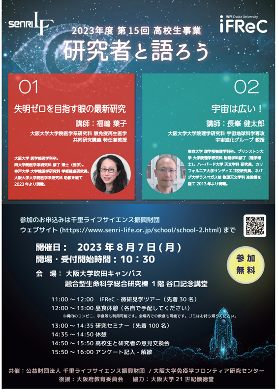 主催 公益財団法人千里ライフサイエンス振興財団 大阪大学免疫学フロンティア研究センター(IFReC)
