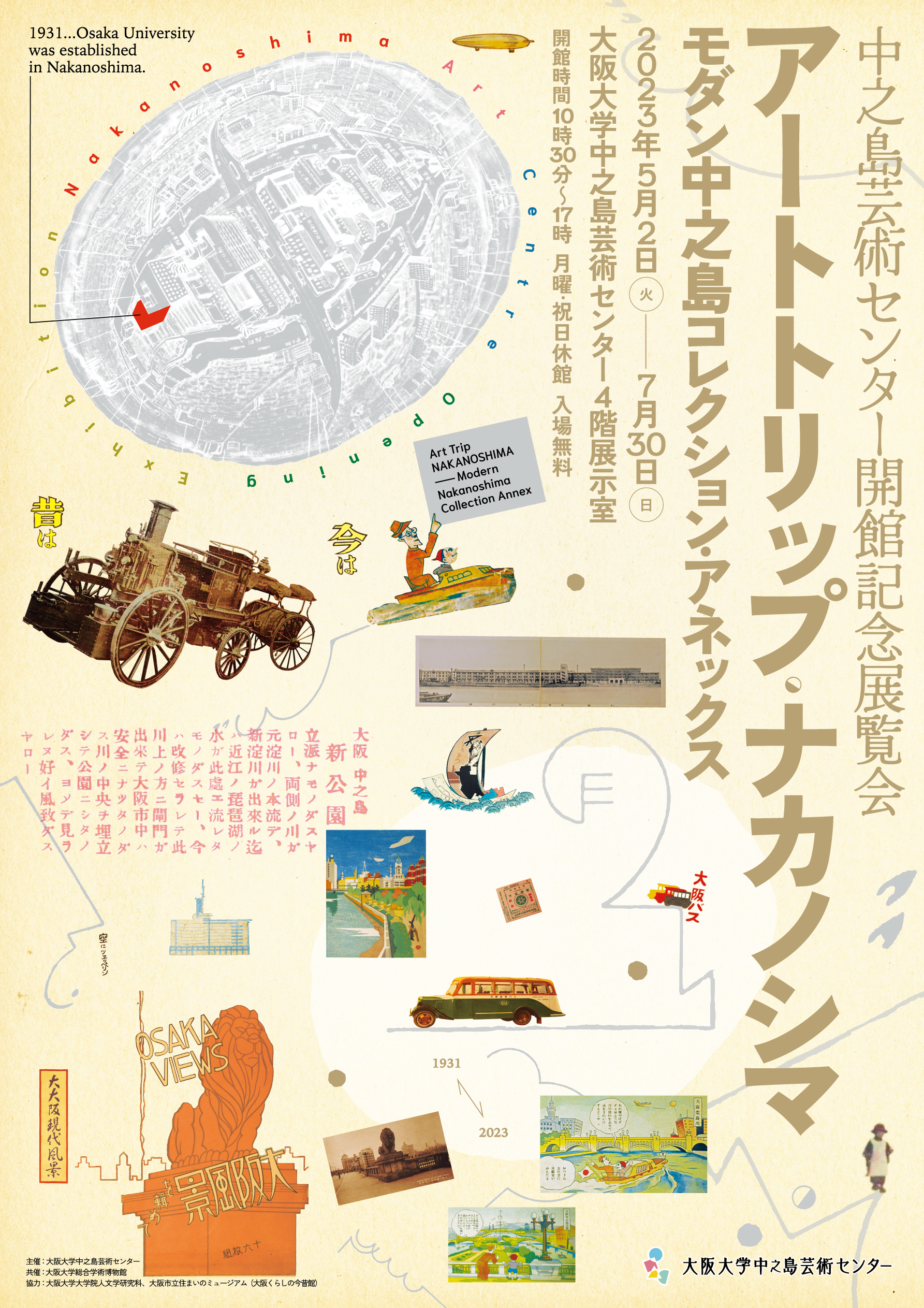 中之島芸術センター開館記念展覧会「アートトリップ・ナカノシマ——モダン中之島コレクション・アネックス」を、中之島センター4階にて開催しています。 「中之島」をテーマに、中之島が題材となった絵画や、アート作品、中之島が舞台となった上演作品等の資料を展示しています。また、中之島を中心に展開したアートに関する施設や、建大阪大学が実践してきたアートプログラムについても展示しています。時空を超えた中之島ゆかりのアートの旅を体験し、現代の中之島にもお出かけいただけたらと思います。