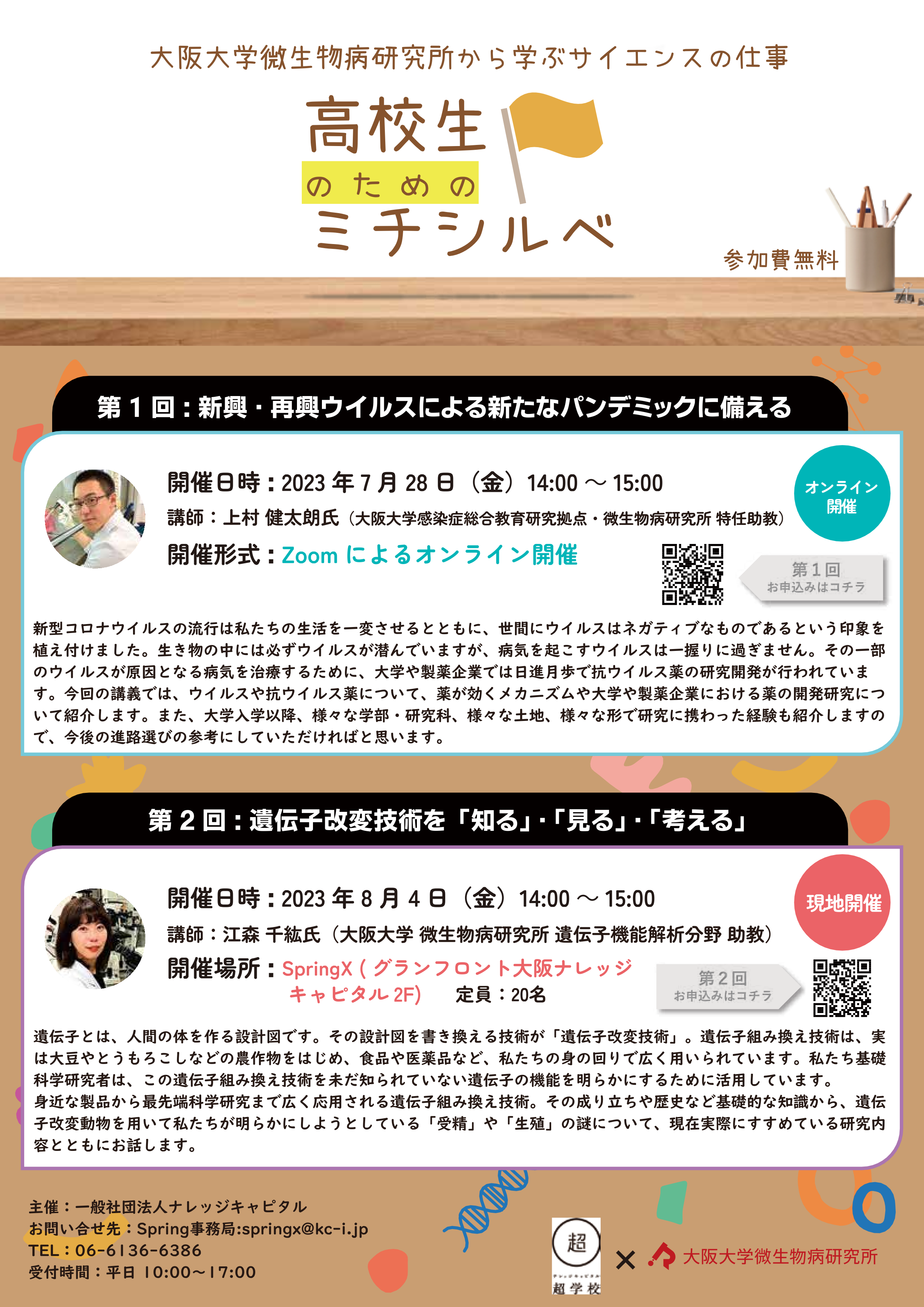 7/28開催:SpringX 超学校 高校生のためのミチシルベ:第1回 新興・再興ウイルスによる新たなパンデミックに備える