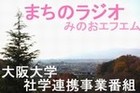 本学と連携協定を締結している箕面市。同市で開局しているコミュニティーFM放送局「 タッキー816みのおエフエム 」では、毎月1回(再放送あり)大阪大学社学連携事業を看板とした番組を放送しています。毎回、大阪大学の取り組みやユニークな活動、大きな文化資源を紹介することによって、より大阪大学を身近に感じていただき、大学と市民と連携・協働を展開する上での足がかりとなることを期待するものです。