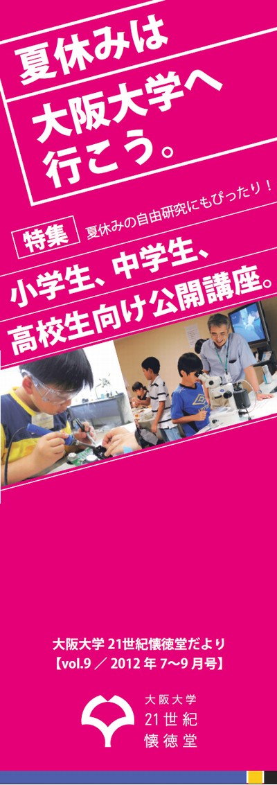 21世紀懐徳堂だよりvol.9発行しました!~夏休みは大阪大学へ行こう。小中学生・高校生向け公開講座特集