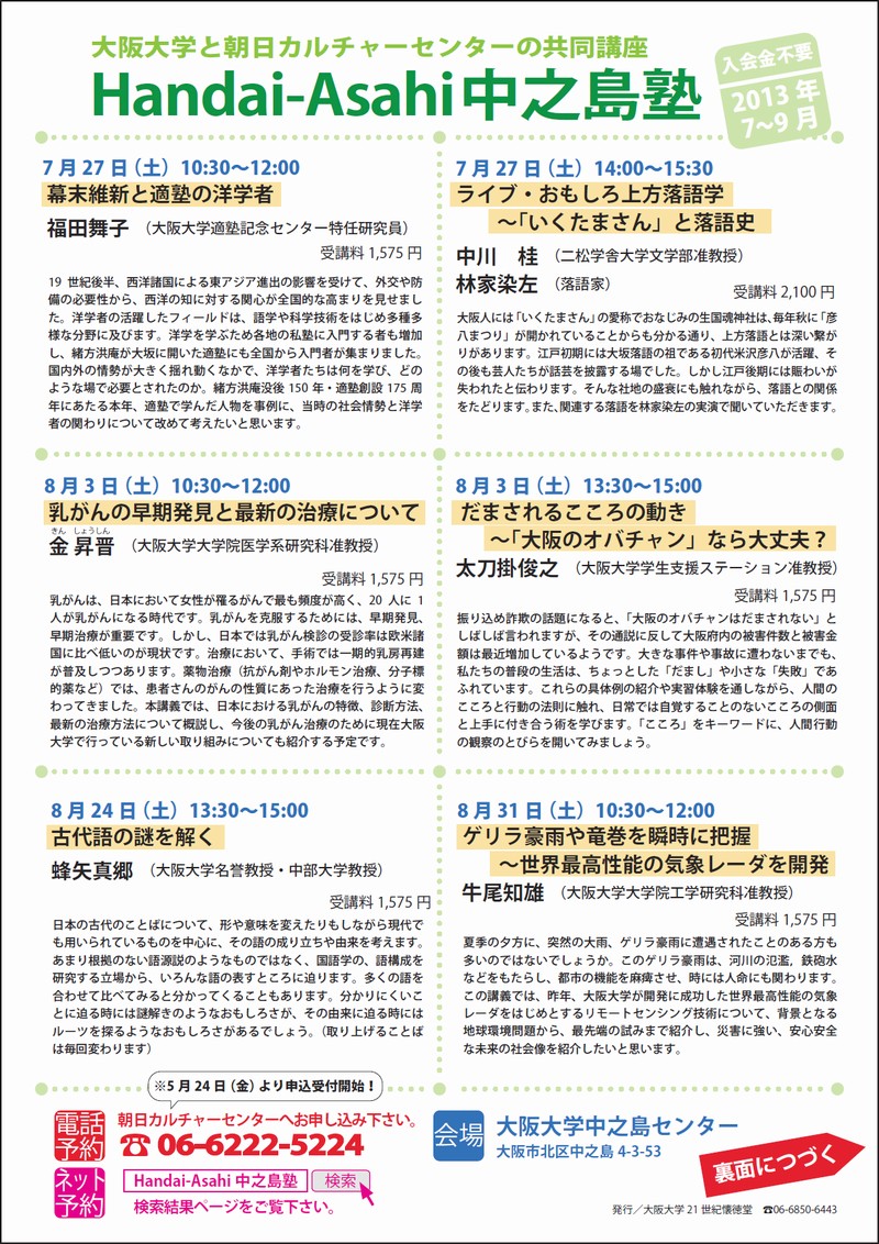 Handai-Asahi中之島塾2013年7月~9月期の申し込み受付中です!