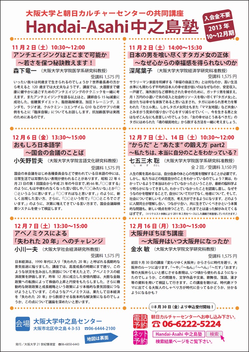 Handai-Asahi中之島塾2013年10月~12月期の申し込み受付中です!