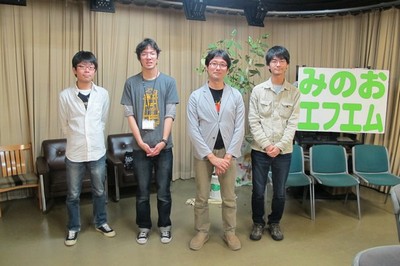 ※写真は収録後の記念撮影[安藤先生(右から2人目)と番組スタッフ(左から東さん、坂口さん、藤本さん。いずれも阪大生です。)]